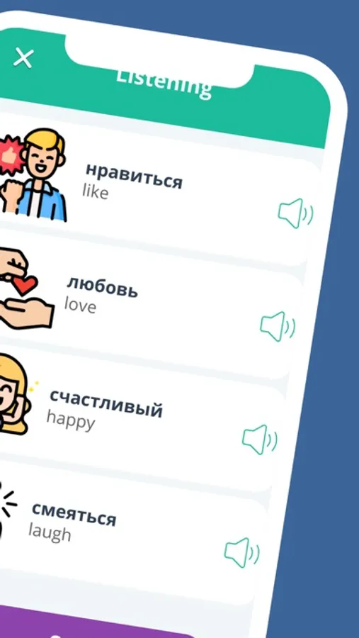 Study Russian words in the app Russian for Beginners A1 Level. Studying Russian has never been so easy and simple!