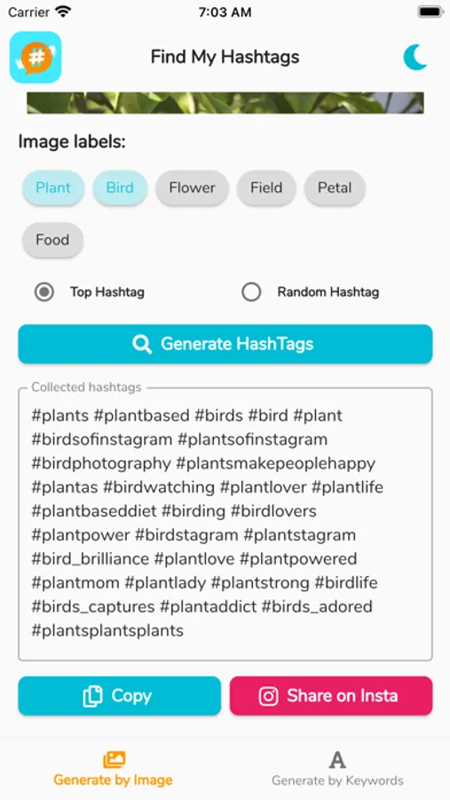 Find My Hashtags for Instagram is an app based on Artificial Intelligence algorithms, which helps you to get the best hashtags for Instagram posts.