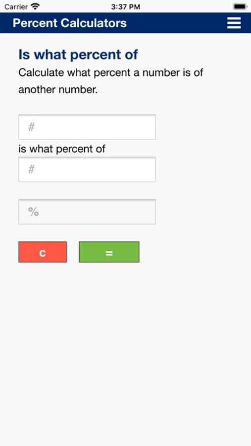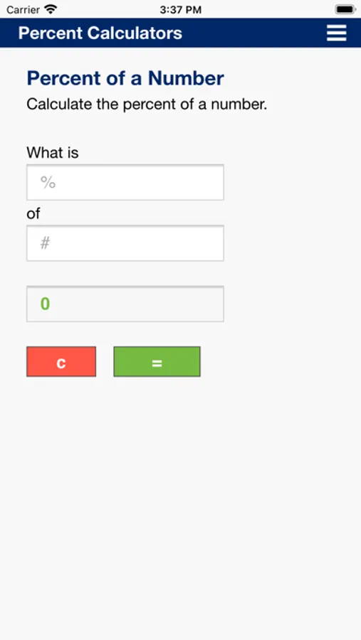 The IOS Percent Calculators App was created in response to requests by visitors to the popular https://percent.info website. The goal was to make the app intuitive, clutter free, fast to operate, and easy to use.