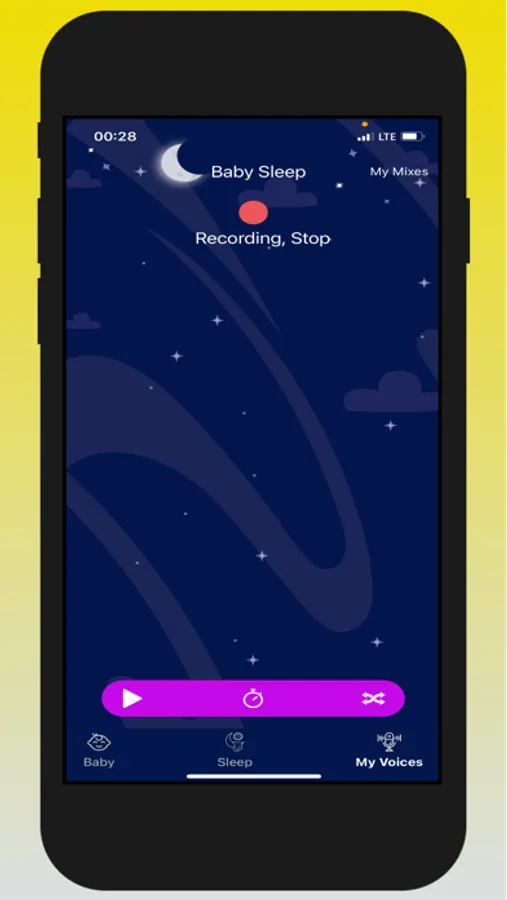 Voice recorder; With this feature, you can record your own voice or any sound and listen to your baby. It continues to play the same sound continuously unless you turn it off.