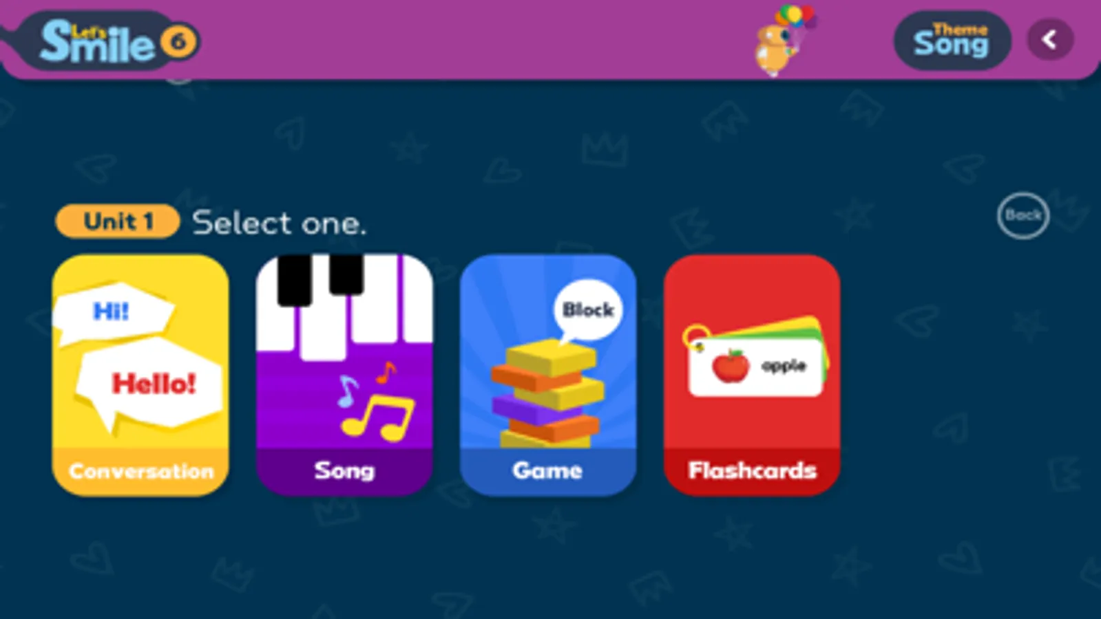 • Conversation: Incorporates conversational language and unit targets in an authentic dialog, catchy song, and a collaborative game
