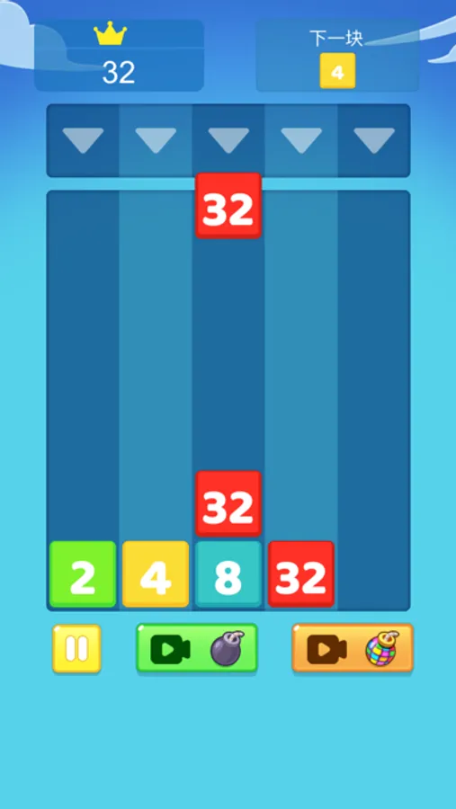 让方块下降,与之前的方块合并,您也可以使用道具