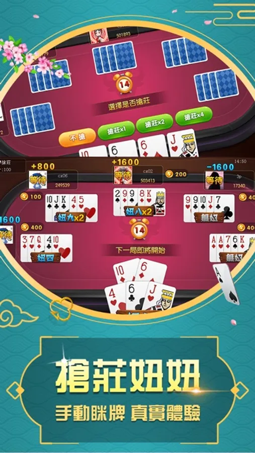 搶莊妞妞、搶莊21點人人都可以當莊家,手動眯牌讓您身臨其境!