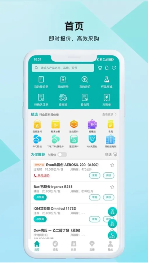 凯茵智采APP为广大采购提供移动式智能化找样买产品方案,移动端实现支付、采样、报价、整包采购化工产品购买全过程,并享受专属经纪人提供服务,让你采购省时省心又省钱