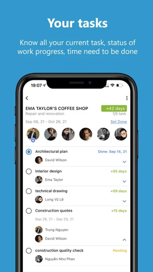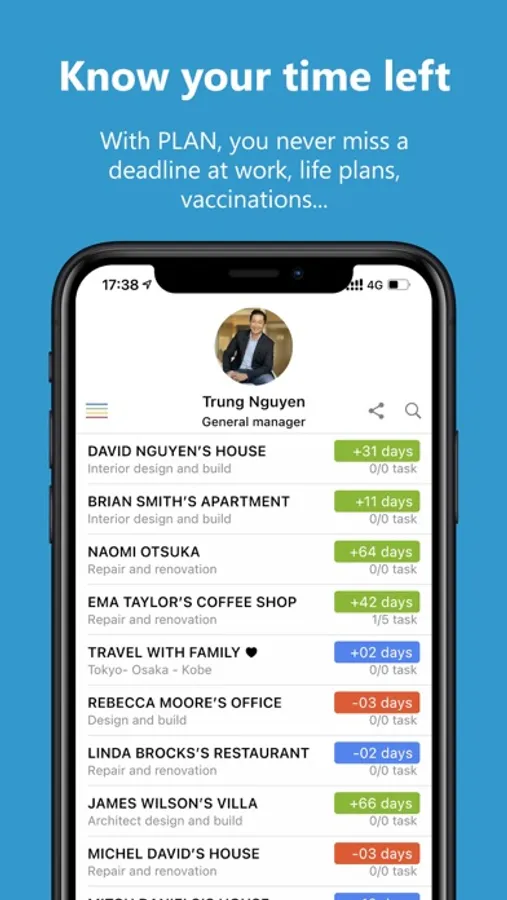 The countdown to the number of days left to complete the work is an outstanding feature, extremely effective in motivating and managing the progress of groups and individuals.