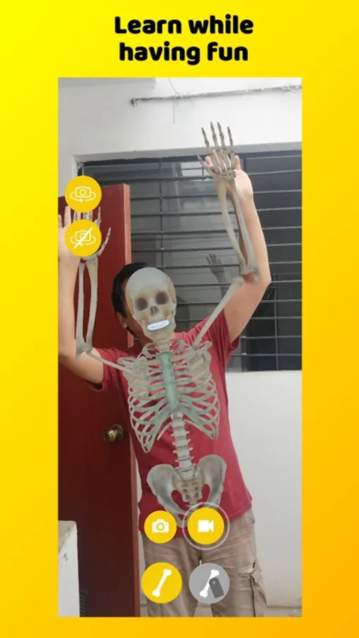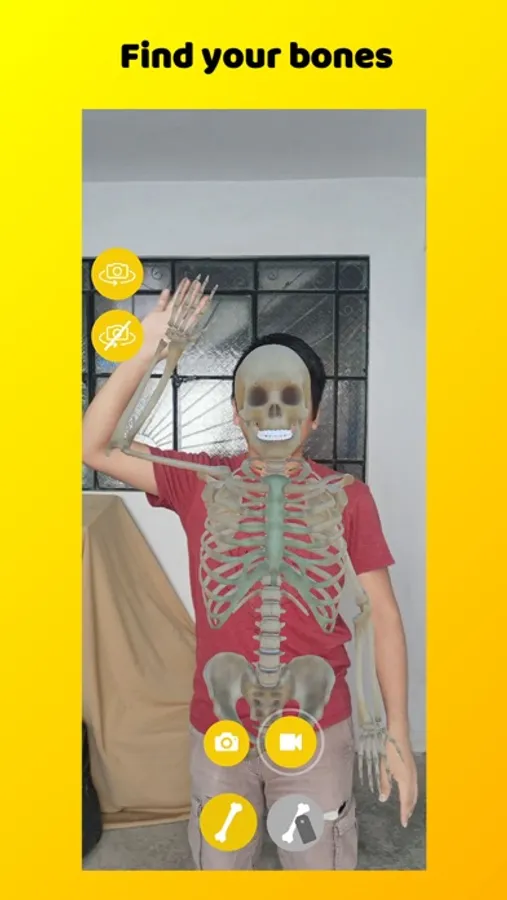 Descubre dónde queda cada hueso de tu cuerpo y aprende su nombre, puedes probarlo contigo o con tus amigos, solo enfoca la cámara y observa con realidad aumentada donde están los huesos del cuerpo.