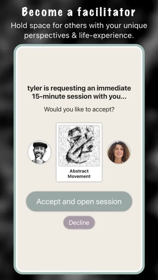 Keep your drawings private or explore your drawings in a shared community space for further discovery. Trained facilitators are available to hold space for you in LIVE voice-based sessions. Sessions are usually 15 to 20 minutes long and are free of charge.