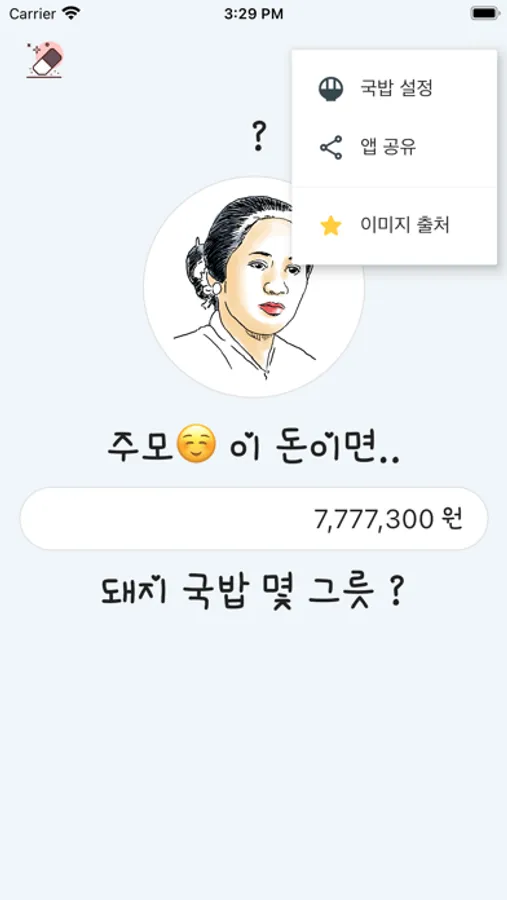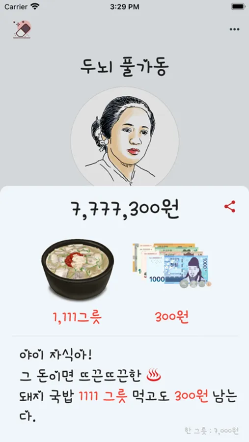 이 돈이면 국밥이 몇그릇, 잔돈이 얼마인지 빠르게 파악 할 수 있습니다.