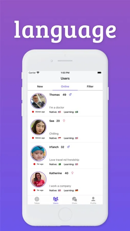 Share info about yourself set your target language, and start searching for native speakers. See photos, bio, and location, and explore our vast global community. Connect with cool people, and who knows, maybe you’ll find your next best friend on Tabee.