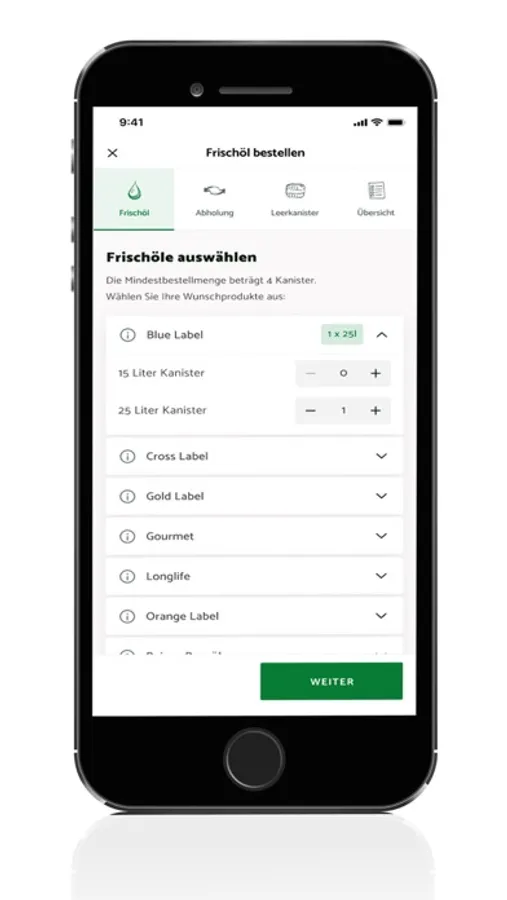 Mithilfe dieser App können Sie uns eine Anfrage für eine Frittieröl-Bestellung und/oder Altfett-Abholung senden.