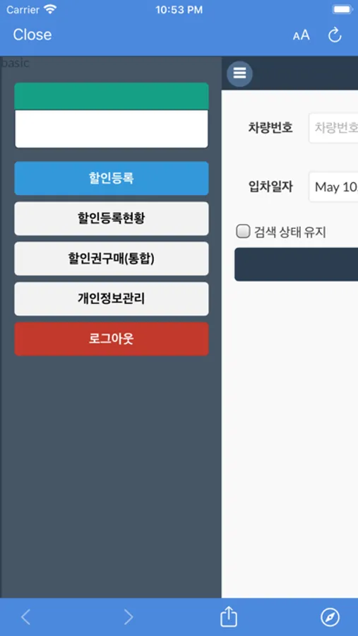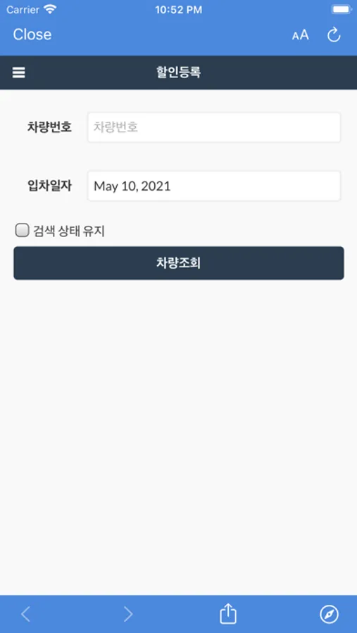 차량번호를 조회하고 주차비를 할인 해줄 수 있습니다.