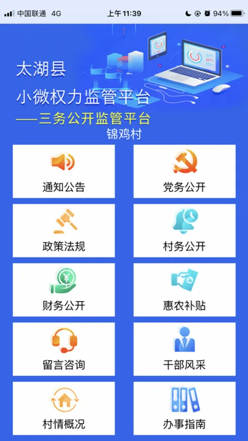太湖县三务公开APP,用于相关职能部门宣传政策、公开办事流程、接受监督、发现问题、改进工作。有利于人民群众了解各项政策。保障群众知情权、参与权、监督权,更好地参与到基层权力运行的监督当中,有效化解风险矛盾。