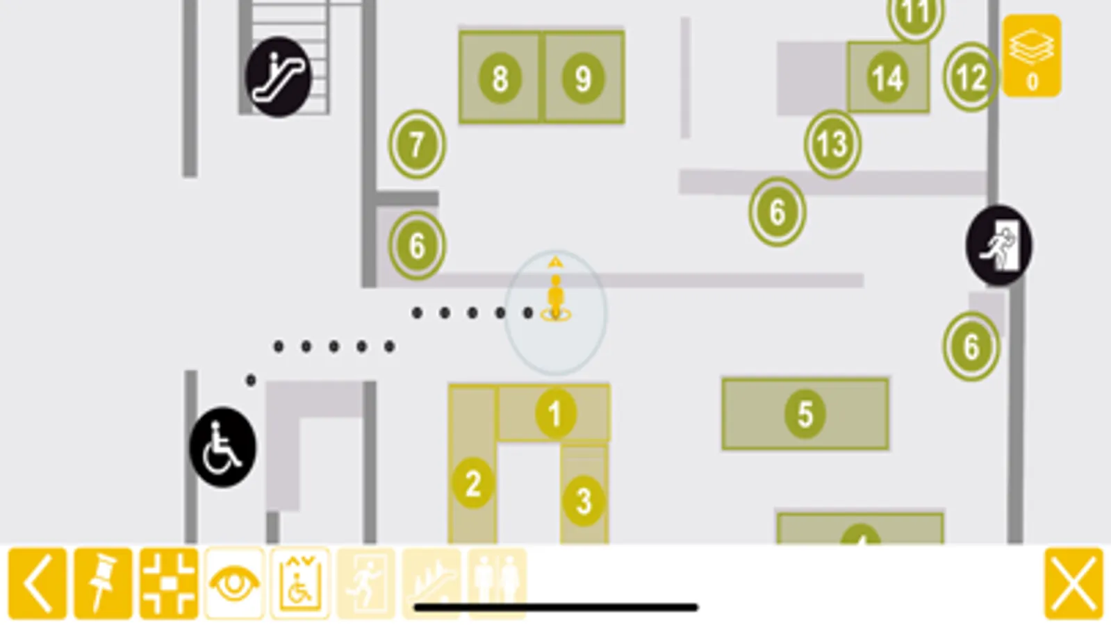 It also offers additional information as audios, videos or links, in order to improve the visit. You will also find practical information such as the way to get the lifts, toilets and emergency exits.