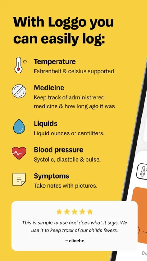 IMPORTANT: Loggo is only used for you to input health metrics such as body temperature, symptoms and keeping track of what medicine has been administered. Always consult your doctor. Using Loggo is not a substitute for a visit to the doctor.