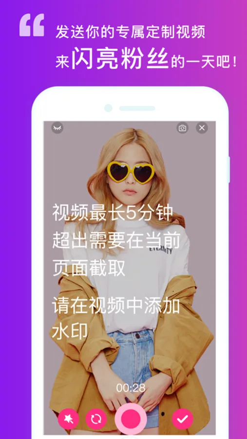 您的粉丝可以通过这个平台向您发送视频请求,使用我们的名人端APP可以顺利创建和上传所有视频,用户可以直接在站内提取。