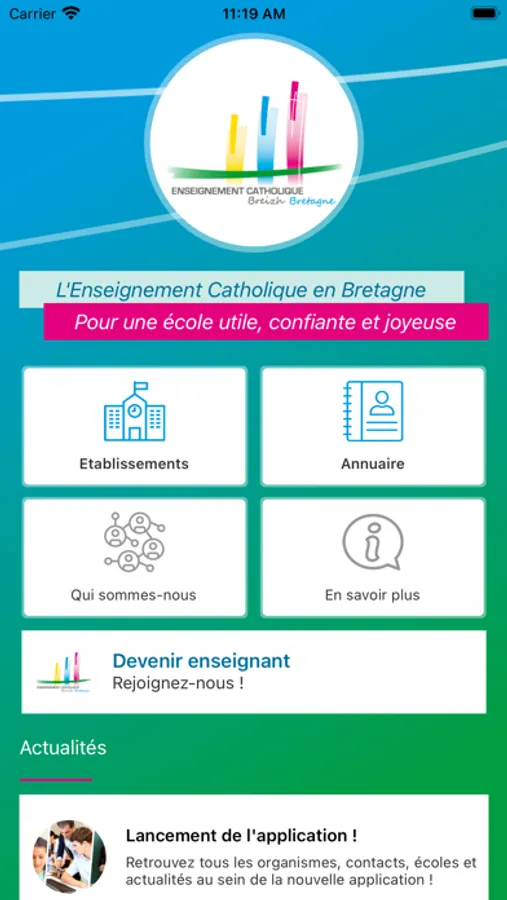 Trouvez rapidement une école, un collège, un lycée ou un établissement d'études supérieurs de l'enseignement catholique en Bretagne.