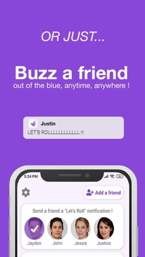 The "Let's Roll" app allows you to connect with friends and make plans together. You can create an activity, and invite your friends through the app. The app will then remind your friends the time and place for the activity through a notification. Oh yea, the app also allows you to buzz your friend out of the blue if you feel so.