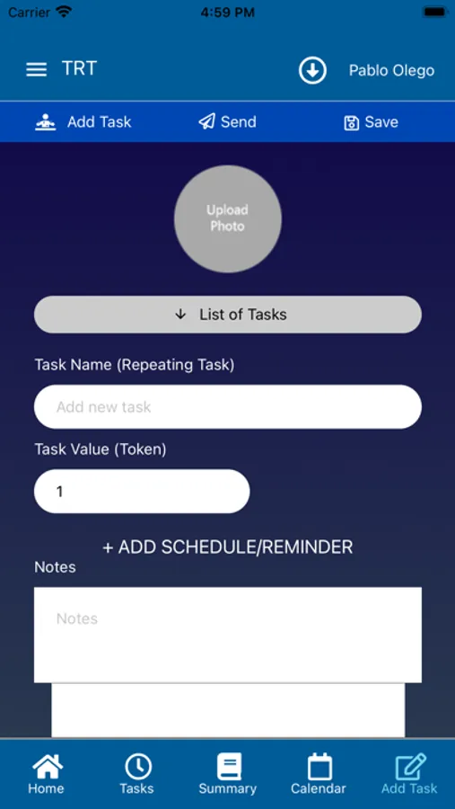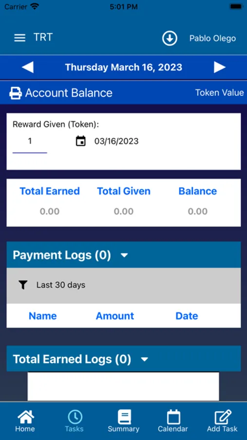 This is a chore App or task tracker app with the capability to assign Tokens (rewards) to each task. The Primary User (eg parent) can add tasks (chores) and rewards for Others (eg kids). The individual tasks can have different values. Chores can be assigned and tracked for the whole family. The total value of tasks completed are accumulated and can be paid at any time. A balance is always kept and Tokens can be given a value, eg one token equals 10 cents.