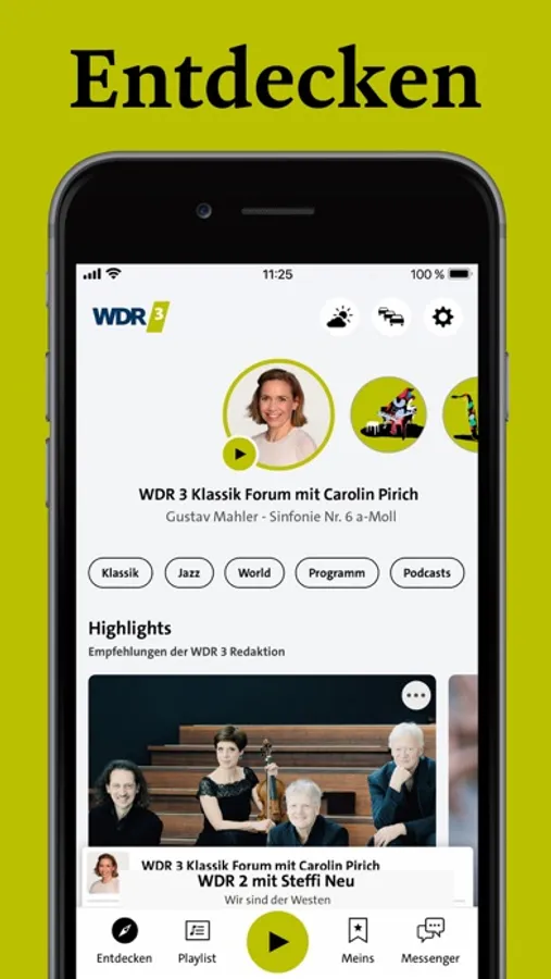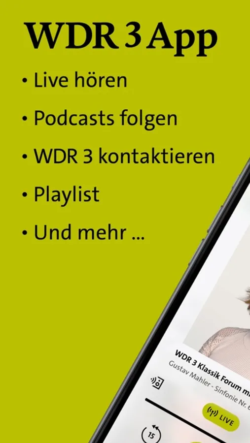 Mit der WDR 3 App haben Sie Ihr Kulturradio immer dabei: Live-Radio und Podcasts, aktuelle Kultur-Berichte und Dokumentationen, Klassik und andere spannende Musikszenen.