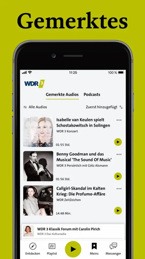 Sie interessieren sich besonders für bestimmte Themen oder Sendungen? Unter „Mein WDR 3" können Sie Ihre persönliche Sammlung gemerkter Audios erstellen und auch Inhalte einzelner Sendungen durchstöbern und abonnieren.