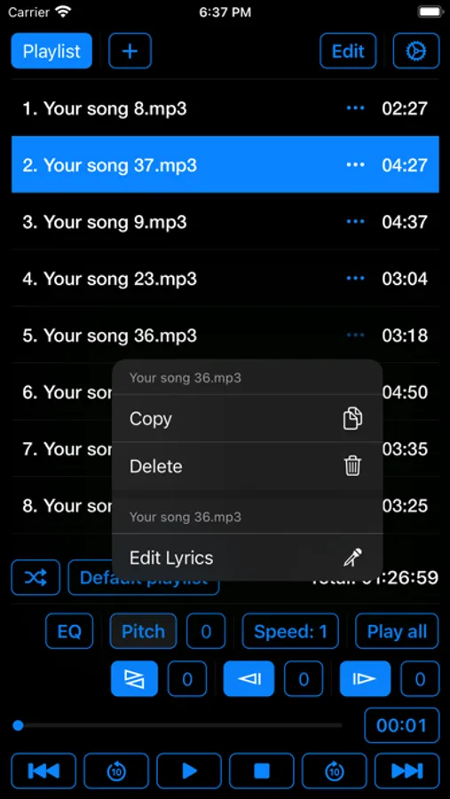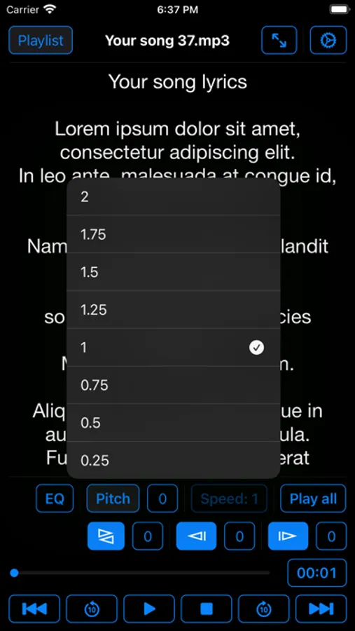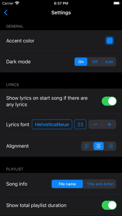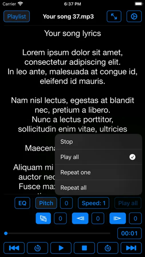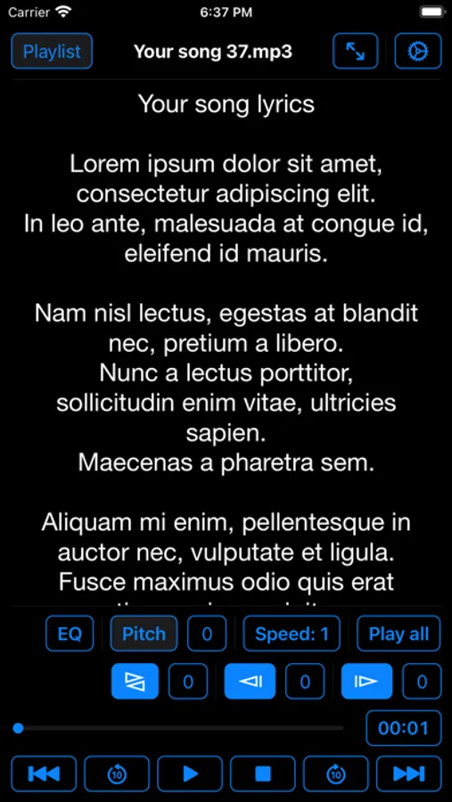 - Play ".mp3" / ".m4a" files and display saved lyrics during playback;