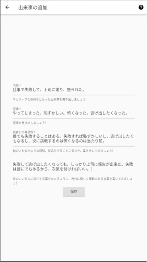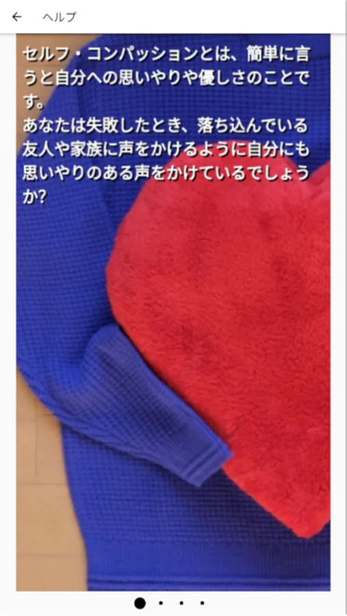 本アプリでは、日々のネガティブな出来事をセルフ・コンパッションで重要視される3つの考え方で捉え直して日記を書くことができます。