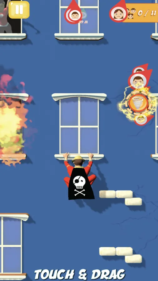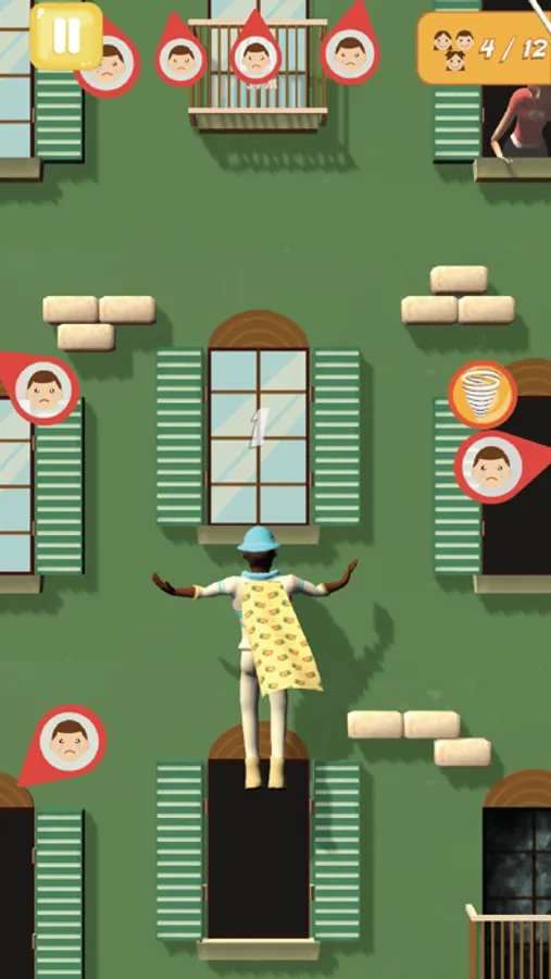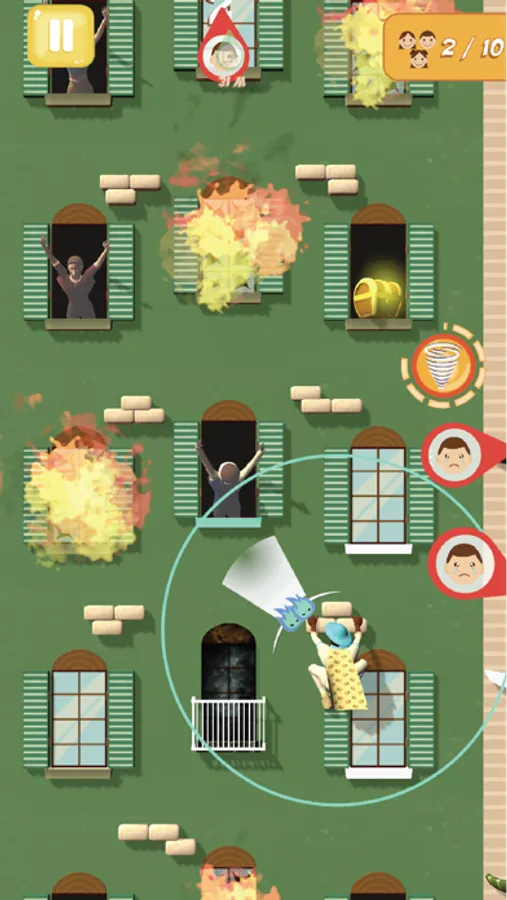 No time to waste! Buildings are on fire and Super Firefighter is on his way. Jump on the windows and save everyone!