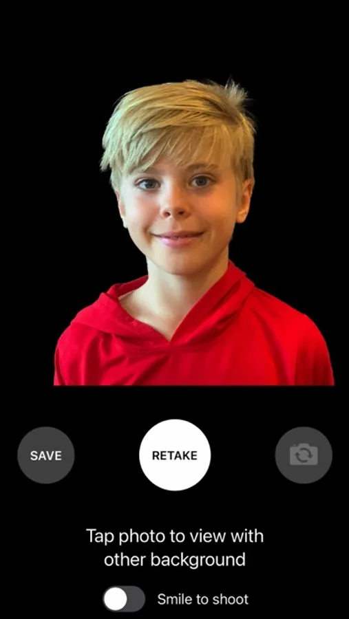 Tap the photo to preview with different backgrounds, and finally save to your Photo Library. Note that the background is not saved with the photo; this is for viewing only.