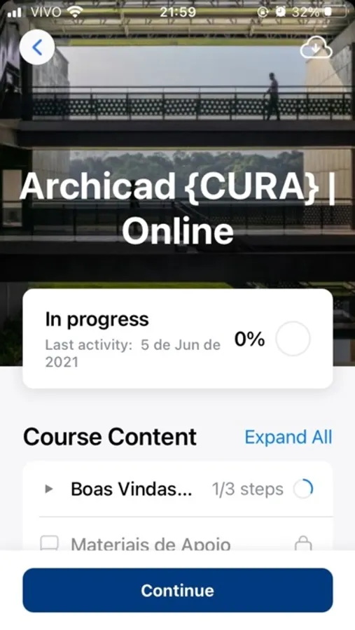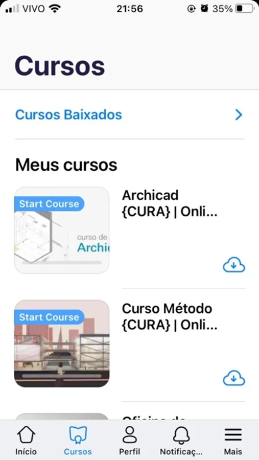 Aplicativo da plataforma de cursos online do curso {CURA}.