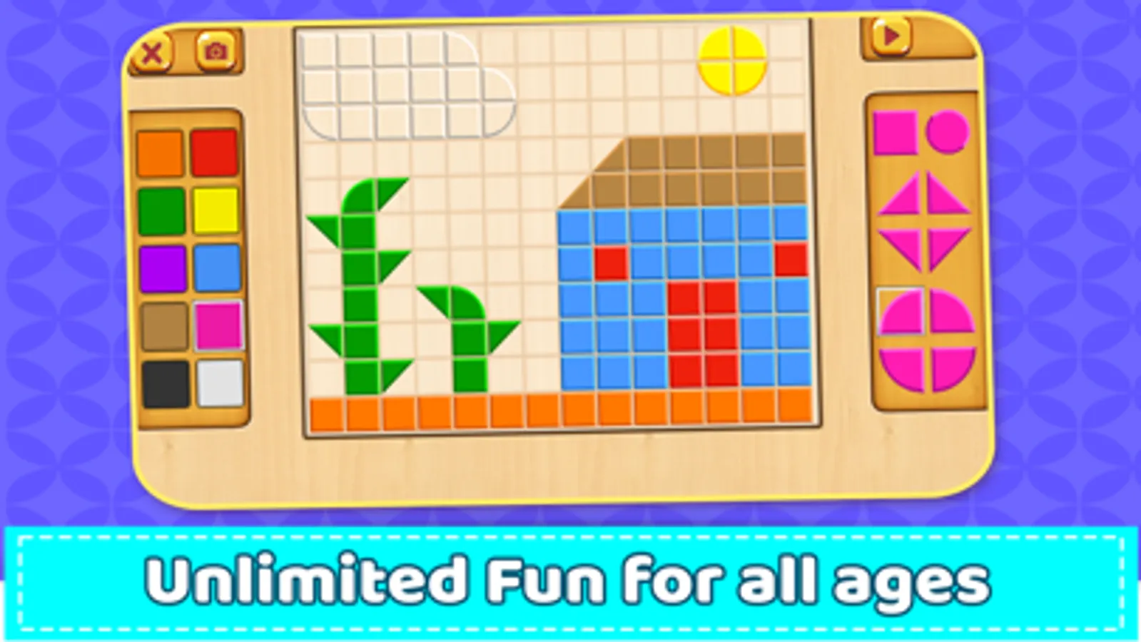 For adults, Mosaic Puzzles free can be really stress relieving & Anti-stress game. Just relax and enjoy a session of nice and comfy color and shape therapy! Lots of colors and shapes for kids to play. Dive in the game and forget problems & relax to train your brain. Best art games for kids to improve creativity for children