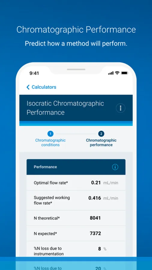 This calculator helps you predict how a chromatographic method will perform. Fill in parameters such as column geometry, system dwell volume, mobile phase, experimental conditions, etc. Then, this app will calculate the expected chromatographic performance (e.g., gradient slope, number of plates, peak capacity, backpressure, optimal flow rate). For all fields in these calculators, you can either use default values or values that are specific to your method, column, and system. All results can be saved as a PDF.