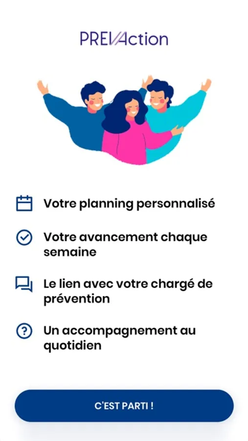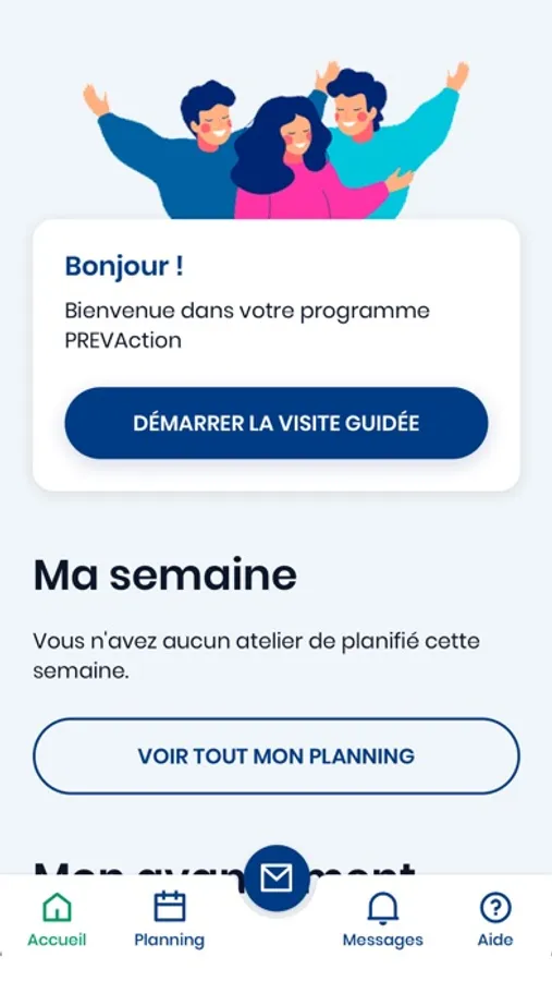 Bienvenue au sein de l’application PREVACTION, qui a pour but de vous accompagner tout au long de votre programme d’ateliers thérapeutiques au sein de nos établissements, mais également depuis votre domicile.