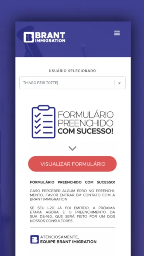 Neste aplicativo, você cliente da Brant Immigration, poderá acompanhar todo o seu processo de forma online e em tempo real. Seja de visto de turista, visto de estudante e extensão/mudança de status. Os formulários de coleta de dados serão preenchidos pelos próprios clientes da Brant Immigration para avançar dentro do aplicativo cada etapa do processo, e recebendo as orientações dos profissionais na forma de preenchimento. No aplicativo você encontrará pagamentos pendentes de órgãos consulares, seu agendamento de entrevista, treinamento preparado pelos profissionais e documentação enviada a escolas, consulados e imigração. O cliente saberá de TUDO que a Brant Immigration estará fazendo em seu processo, nada a esconder, mostrando a total transparência.