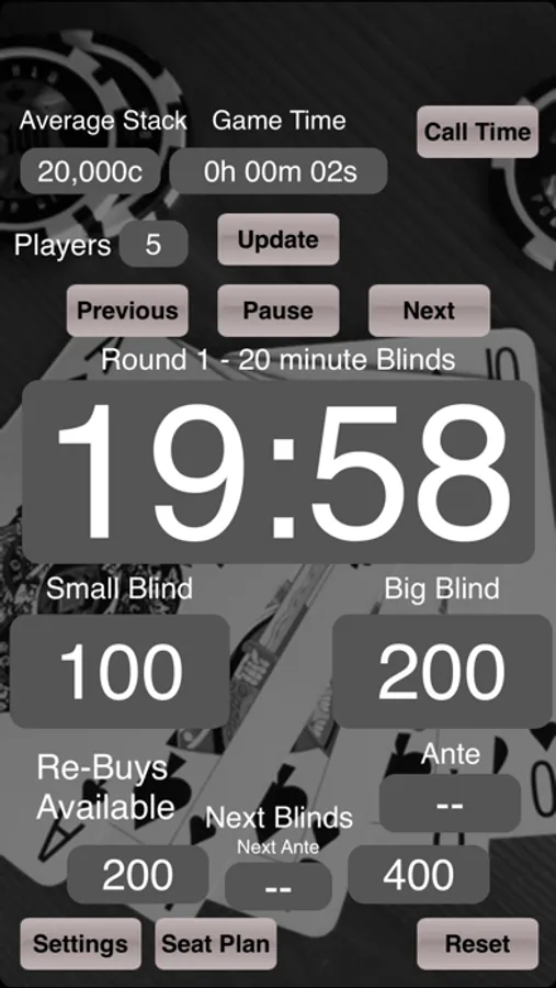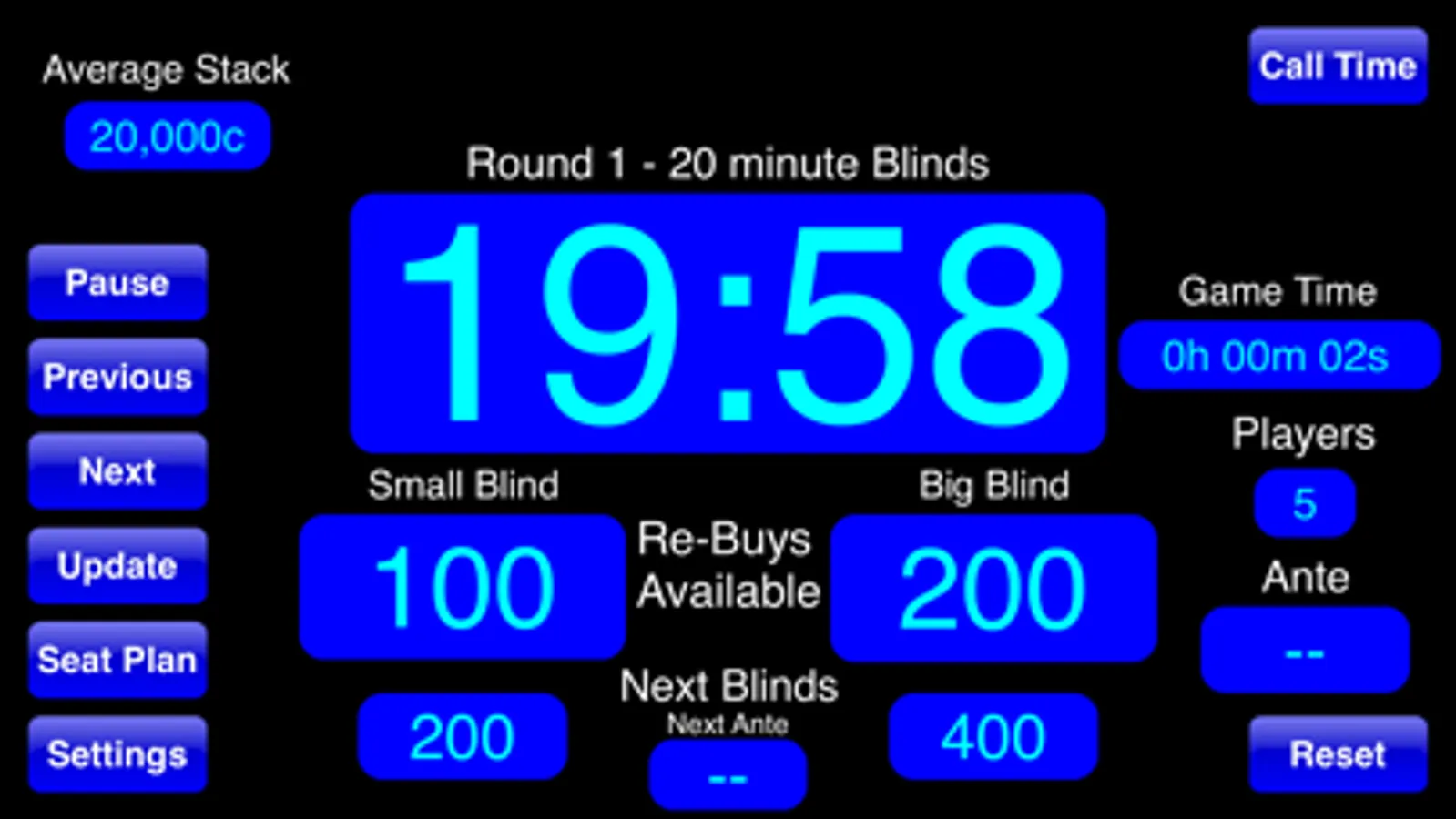 Poker Blinds Timekeeper is a Poker game timer. Although at its core it is built around Texas Hold'em, it can be used for most types of Poker game.