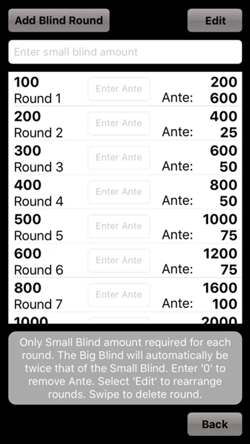 - Pause blind round, skip blind round or return to previous a previous blind round