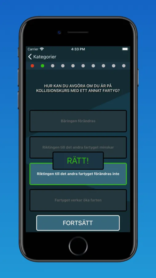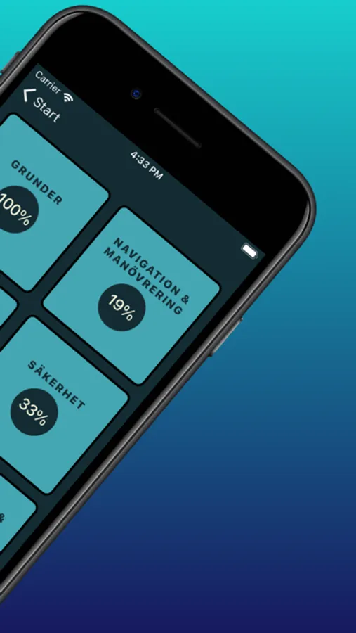 - Kategorier där du kan se hur stor andel du klarat