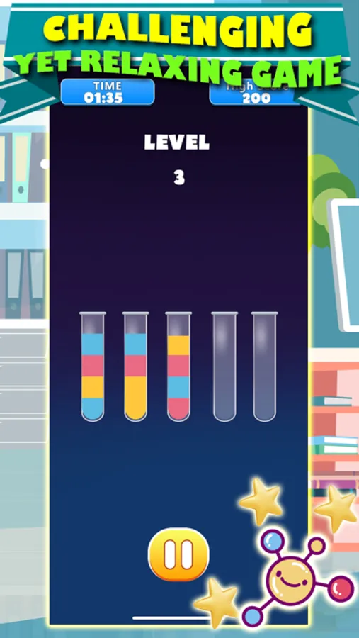Welcome to fun and addictive puzzle game! Try to sort the colored water in the glasses until all colors in the same glass. A challenging yet relaxing game to exercise your brain