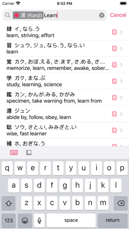 * Over 6,500 Kanji characters with guided stroke animations, On’yomi and Kun’yomi readings.