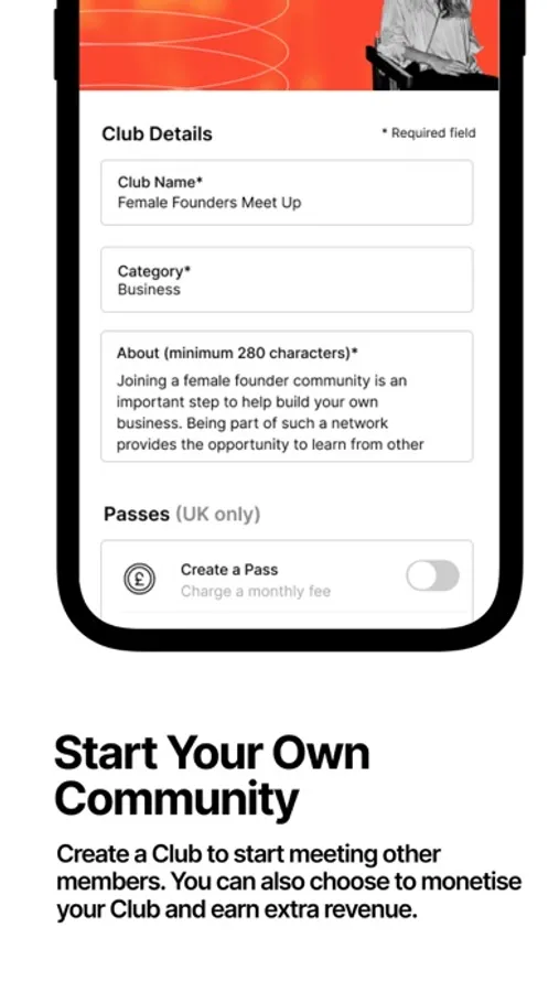 Create a Club to start meeting other members. You can also choose to monetise your Club and earn extra revenue.