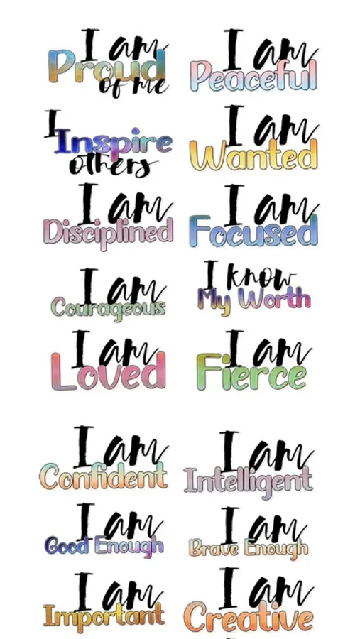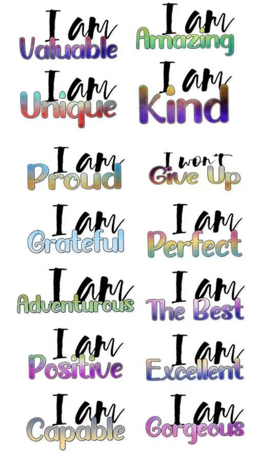 48 Colorful motivational stickers with positive affirmations to keep yourself inspired and motivated. Bold ink and watercolor style. These stickers look great in light or dark mode!