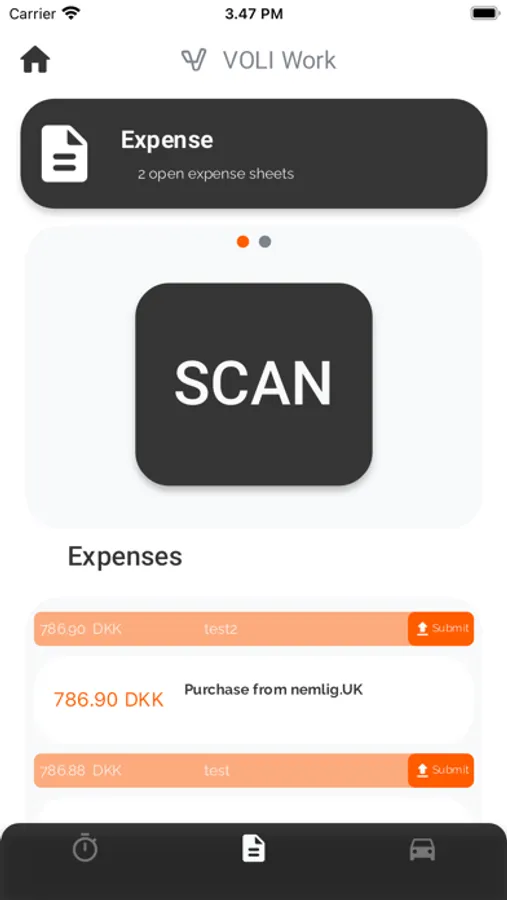 VOLI work allows you to scan expenses on the go. The app provides you with a list of previous scanned expenses. Thus, making you able to maintain an overview.