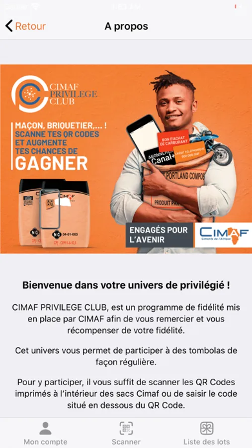CIMAF PRIVILEGE CLUB, est un programme de fidélité mis en place par CIMAF afin de vous remercier et vous récompenser de votre fidélité.