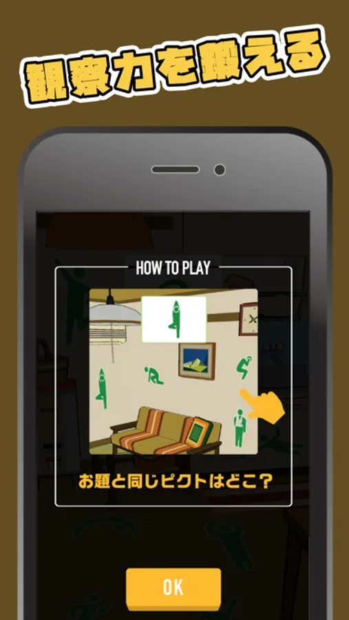 色んなポーズのピクトの中から同じものを見つけてタップ!