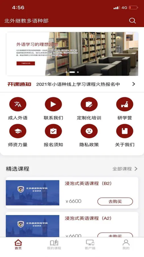 北外继续教育学院多语种部开设英语、德语、日语、俄语等25语种培训项目,针对不同学员情况和要求,设有不同形式的课程。