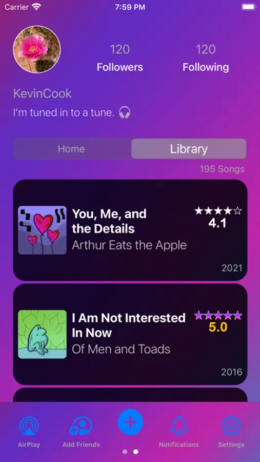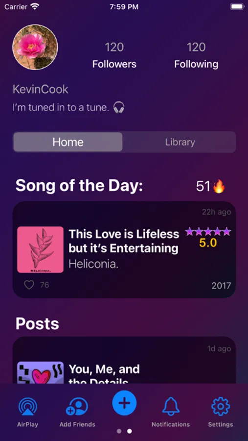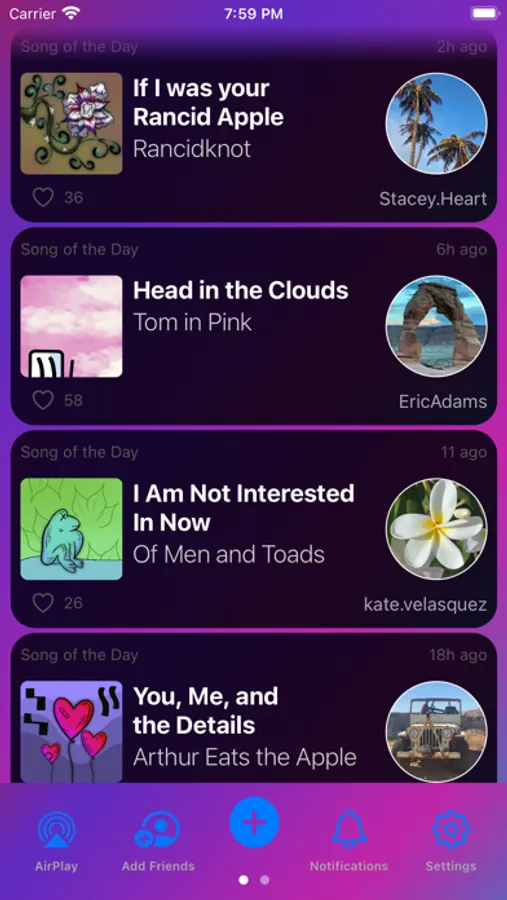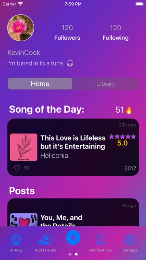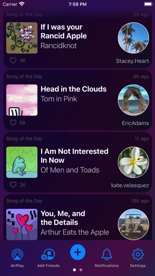 * Notifications that keep you in the loop. Stay connected by seeing who has liked your 'Song of the Day' or of any new followers that have come your way. You can also enable the option to be reminded when to post your next 'Song of the Day' so you don't lose out on your streak.