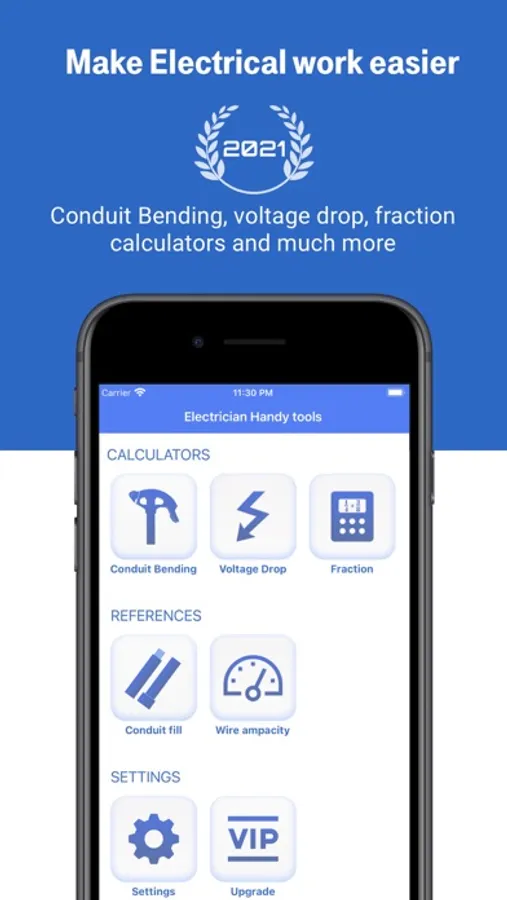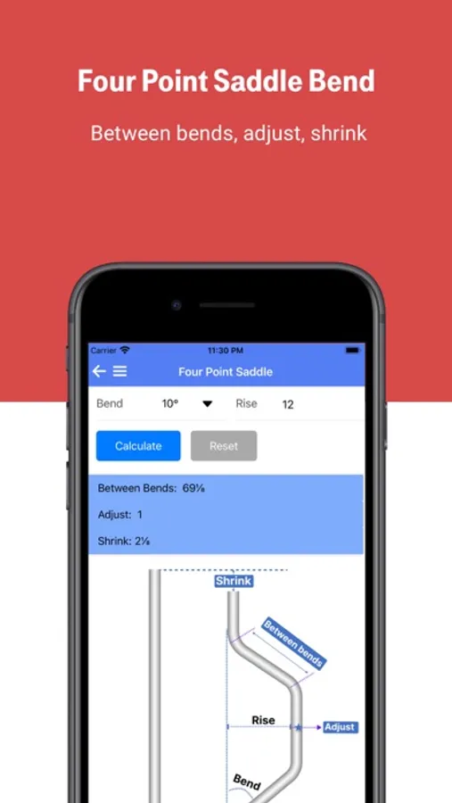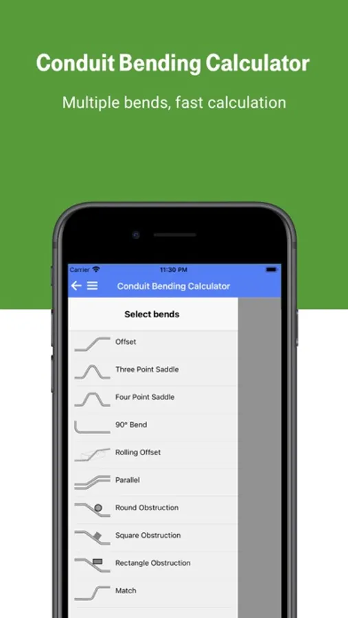 - Conduit bending calculator: visually showing bend shapes and giving calculated marks help to finish jobs quickly and easily.