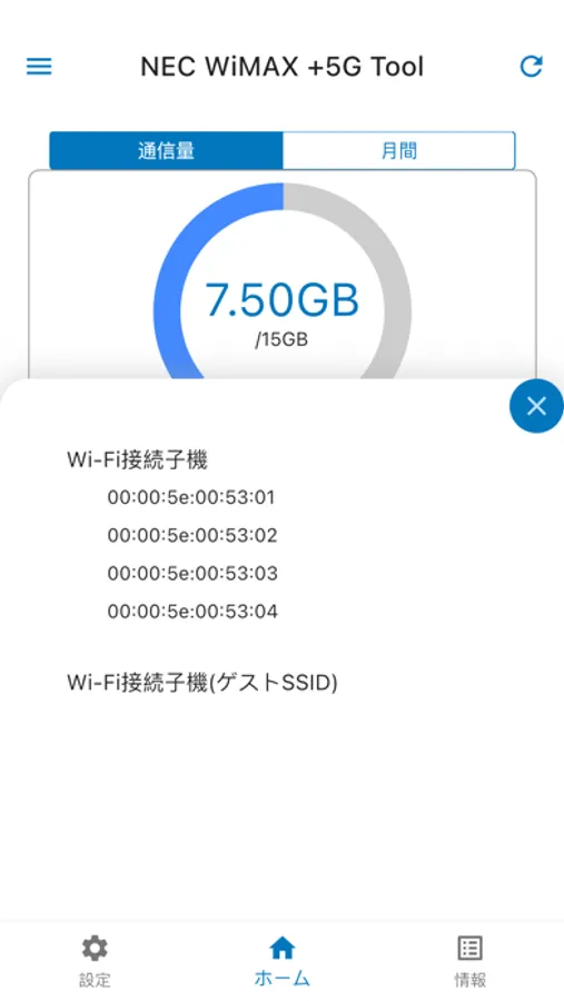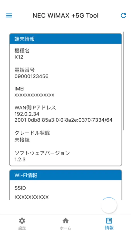 NEC WiMAX +5G Tool はスマートフォンやタブレットからモバイルルータ、ホームルータの情報の参照、設定の更新ができるアプリです。