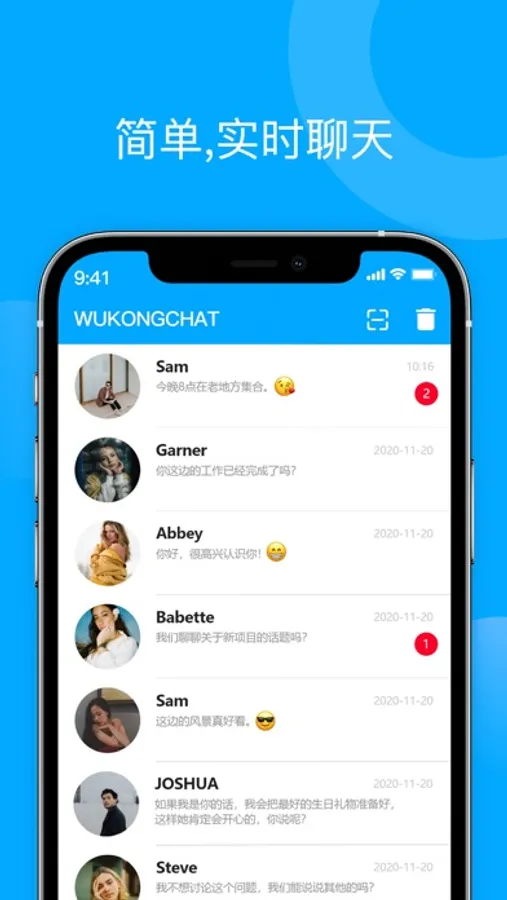 WuKong Chat 是一个即时通讯消息收发的手机应用,无需付费即可下载使用。此应用使用您手机的网络连接,让您与朋友或家人保持联系。
