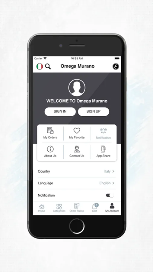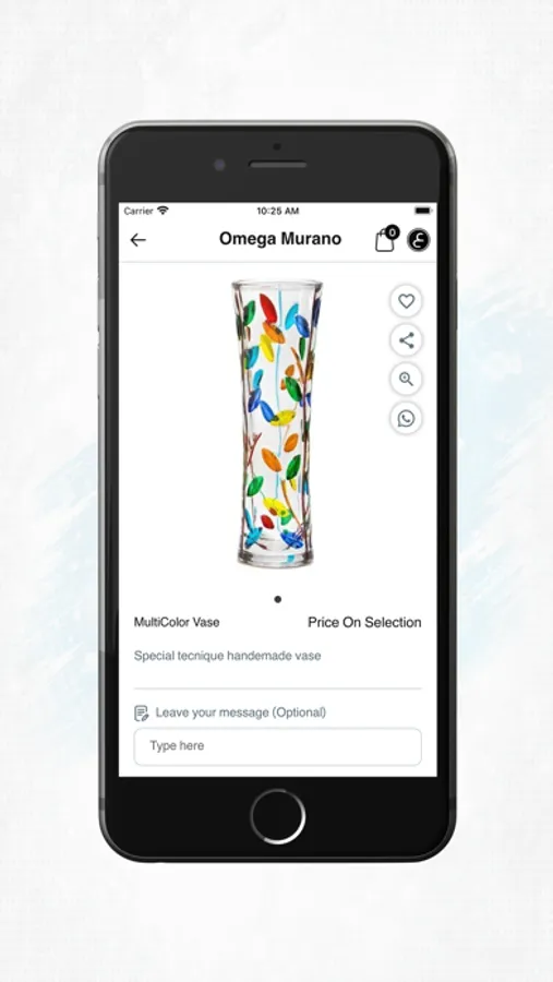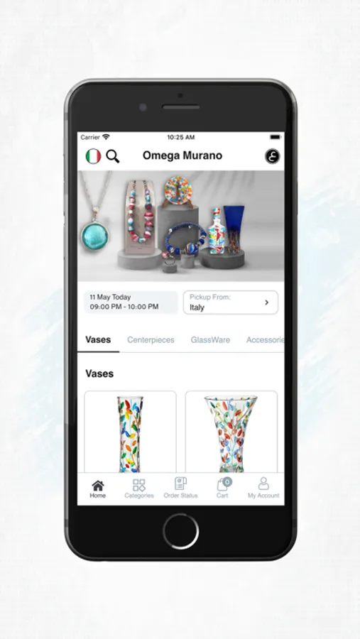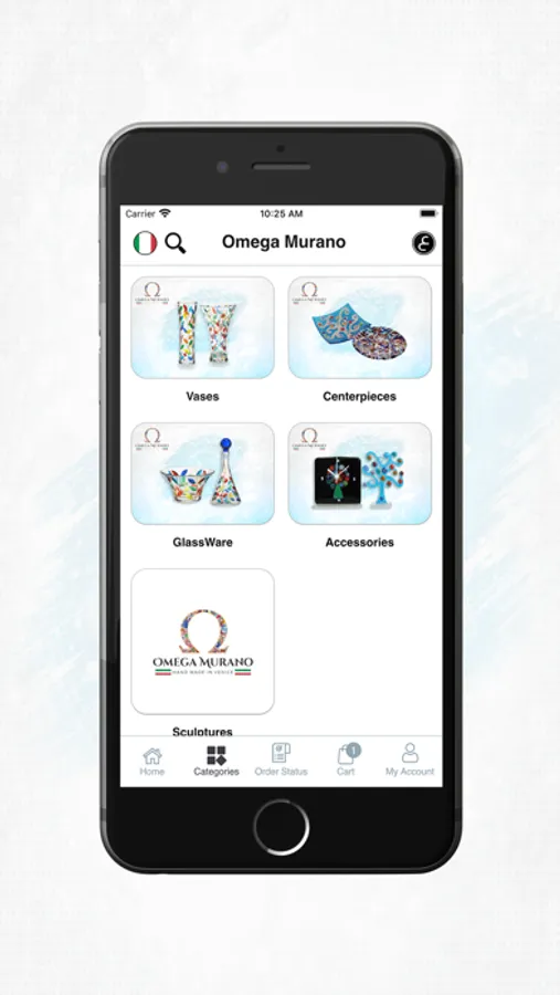 Omega Murano is a specialized application in selling original handmade glass in Italy. The application makes it is possible to purchase Omega Murano items online, with home delivery. All you have to do is open the application and navigate your way to the suitable category. After that you can add the items you want to your cart and proceed the ordering process by choosing the receiving order method and the payment method along with the rest of the required information.