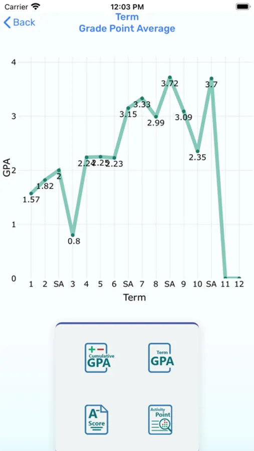 7. View the trend of your GPA, Cum. GPA, Grade and Student Activity Points